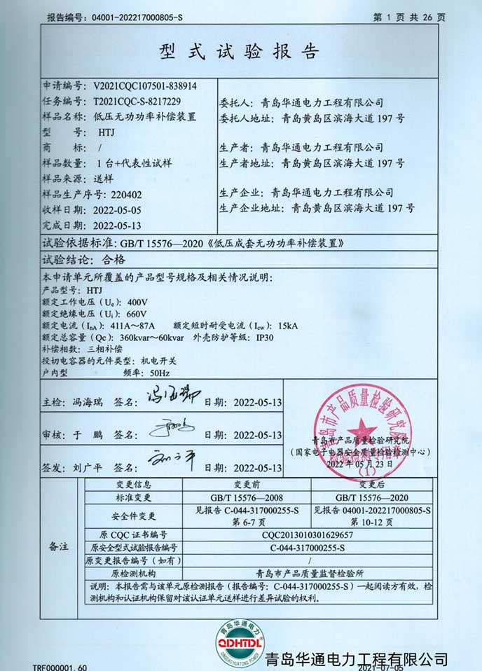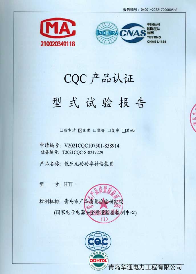 • HTJ低壓無功功率補償裝置檢驗報告