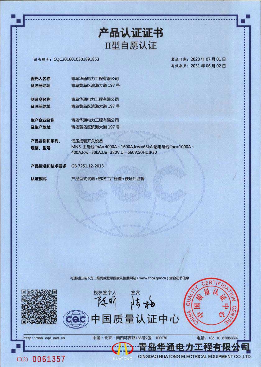 MNS4000 Product Certification Certificate Ⅱ Voluntary Certification